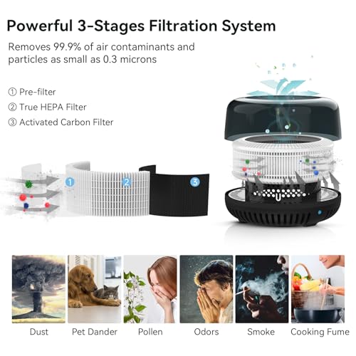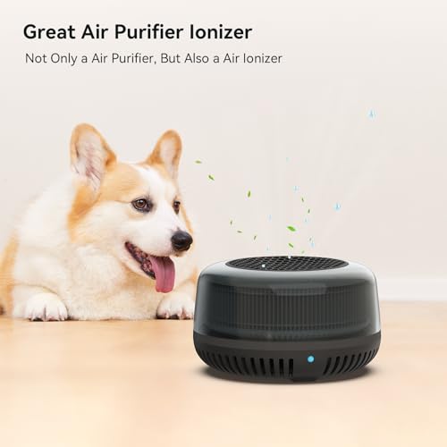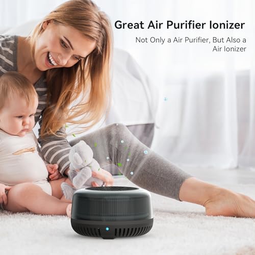 QUEENTY - جهاز تنقية الهواء صغير للمنزل مع فلتر تنقية الهواء عالي الكفاءة H13، ومزود بمؤين لمساعدتك على تنفس الهواء النقي والأيونات السالبة في المكتب وغرفة النوم والسيارة من كوينتي (أسود)