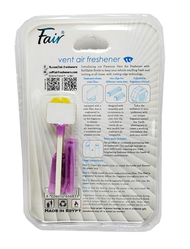Generic - فواحة و معطر جو وهواء بمشبك يثبت على فتحة تهوية السيارة - تصميم مثالي وتأثير ممتاز ويدوم طويلاً - برائحة الورد لون موف بزجاجة قابلة لإعادة التعبئة بالعطر المفضل لديك - من كابر تريد