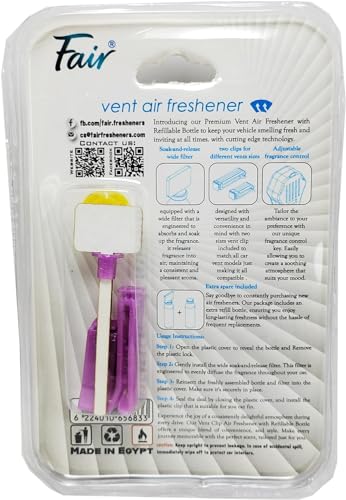 - ✅فواحة و معطر جو وهواء بمشبك يثبت على فتحة تهوية السيارة - تصميم مثالي وتأثير ممتاز ويدوم طويلاً بزجاجة قابلة لإعادة التعبئة بالعطر المفضل لديك