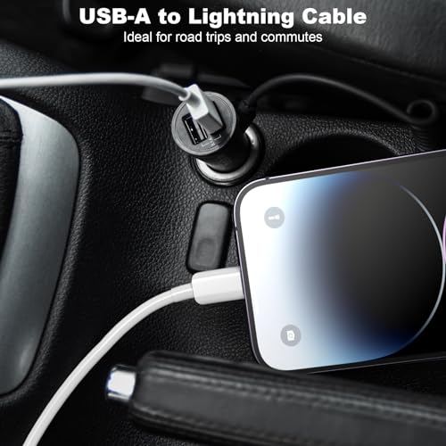 Lengthlink - كابل أبل كاربلاي للسيارة، كابل USB A إلى لايتنينج معتمد من أبل، كابل شحن سيارة متوافق مع آيفون 14/14 برو ماكس/13/12/11/XS/XR/X/8/7، ايباد 4/5/6/7/7، اير 2/3 (0.9 متر)