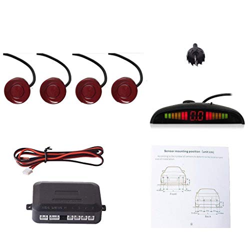 Generic - نظام رادار احتياطي مرئي للسيارة مع 4 مستشعرات وقوف السيارات لمعلومات المسافة والفيديو وتحذير الصوت لسيارة فيات بلون احمر غامق