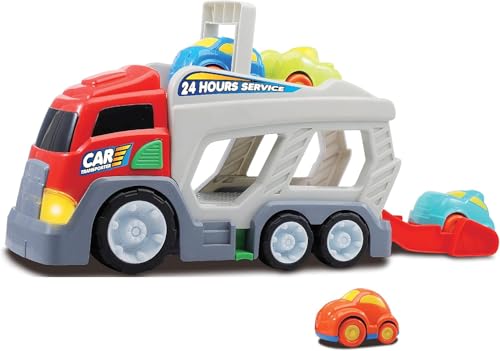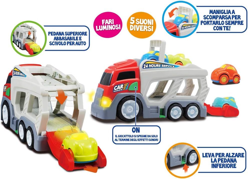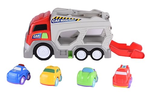 - مجموعة كاملة: تتضمن مجموعة ألعاب شاحنة حامل السيارة شاحنة نقل كبيرة و4 سيارات صغيرة ملونة للحصول على قيمة لعب ممتدة.