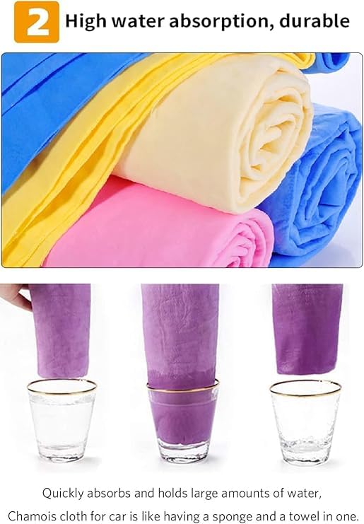 - شمواه فائق الامتصاص لتجفيف خالٍ من الخطوط: تمتص فوطة قماش الشامواه الفاخرة هذه الماء على الفور، مما يترك سيارتك خالية من البقع والخطوط. المادة فائقة الامتصاص تحمل الماء بمقدار 5 أضعاف، مما يضمن جفاف سريع وفعال في كل مرة. مثالية لتفاصيل السيارة وغسلها وتجفيفها دون خدوش.