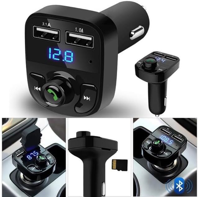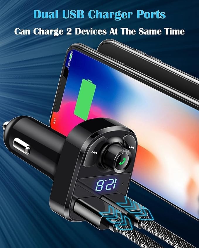 Generic - شاحن سيارة لإجراء المكالمات بدون استخدام اليدين، جهاز استقبال راديو اف ام لاسلكي بالبلوتوث، محول ستيريو MP3، شاحن بمنفذUSB مزدوج