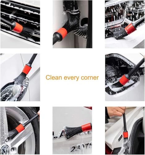 - ✅ مجموعة احترافية للتنظيف الدقيق مكونة من 5 قطع - تتضمن مجموعة فرش تنظيف السيارة الفاخرة 5 أحجام مختلفة (رقم 10، 12، 14، 16، 18) للوصول إلى كل زاوية: فتحات التكييف والشعارات والعجلات والمقاعد الجلد والتابلوه وحجرة المحرك وغيرها الكثير.
