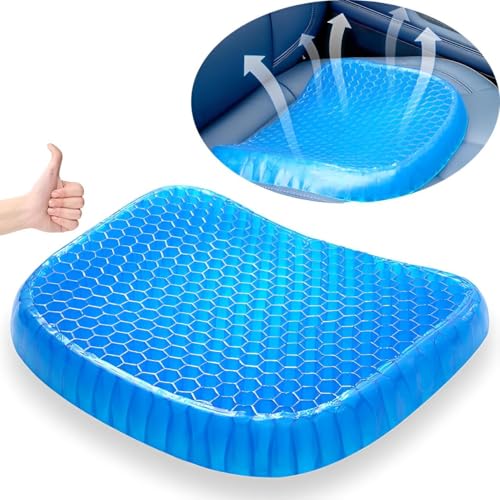 - Experience superior all-day sitting comfort with this innovative blue honeycomb gel seat cushion, specifically engineered to provide exceptional pressure relief and robust support for your body. Measuring precisely 40.6 cm by 35.6 cm by 3.8 cm, this cushion features a unique honeycomb grid structure containing over 300 balanced pressure points that effectively distribute your weight evenly across hips and thighs while perfectly contouring to your natural body curves for maximum ergonomic benefit