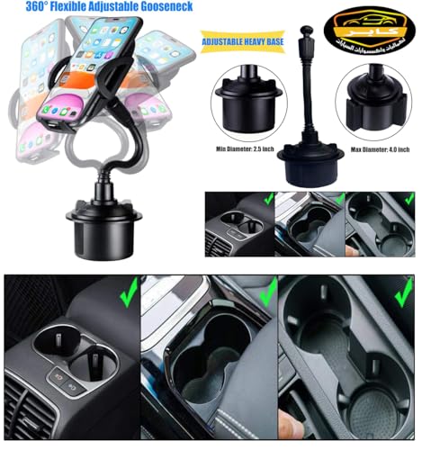 Generic - حامل ومثبت للجوال بقاعدة الأكواب بالسيارة ، متوافق مع جميع أجهزة الجوال يمكن وضع الجوال بشكل أفقي أو رأسي (كود:2418) - من كابر تريد