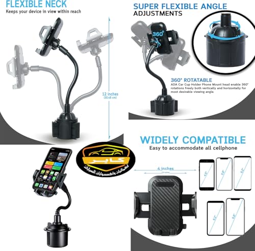 • حامل الهاتف للسيارة قابل للتعديل ومناسب لجميع الموبايلات السمارت. يتميز حامل الأكواب للسيارة هذا بدوران مرن للغاية بمقدار 360 درجة ليمنحك زوايا عرض مرغوبة مختلفة مع قدرات عرض محسنة.