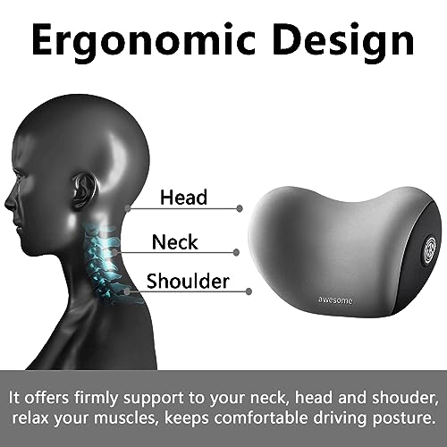 MIGIFTDY - وسادة رقبة للسيارة لمقعد السيارة مريحة وجيدة التهوية من رغوة الذاكرة، غطاء قابل للإزالة (رمادي)