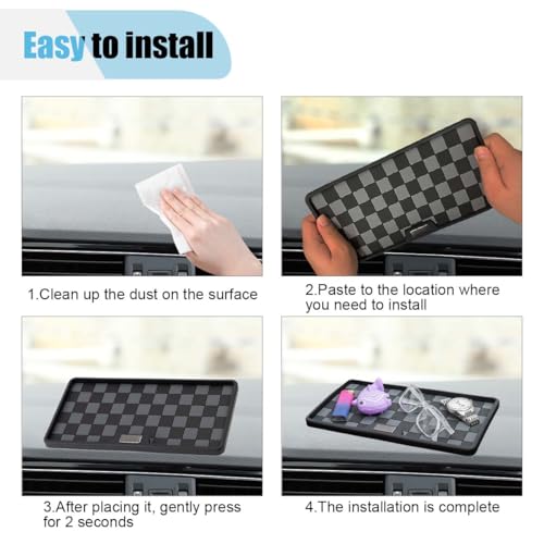 - 【سهل الاستخدام】: بساط السيارة المضاد للانزلاق هذا سهل الاستخدام ولا يتطلب أي شريط أو صمغ، فقط قم بلصق البساط المضاد للانزلاق على لوحة عدادات السيارة أو أي سطح مستوٍ آخر للاستخدام. بالإضافة إلى ذلك، فإن سجادة السيارة المضادة للانزلاق سهلة التنظيف، فقط امسحها بالماء، ويمكن إعادة استخدامها بعد التجفيف.