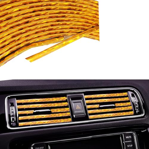 Generic - ديكور لسيارات السيدان والشاحنات وسيارات الدفع الرباعي شريط تزيين منفذ مكيف الهواء للسيارة من الكروم بتصميم مقاوم للماء وقابل للانحناء لمنفذ التهوية - طول 2 متر - (لون ذهبى لامع عاكس) - من كابر تريد