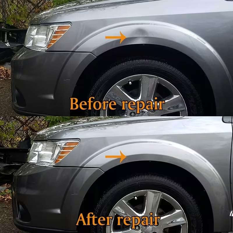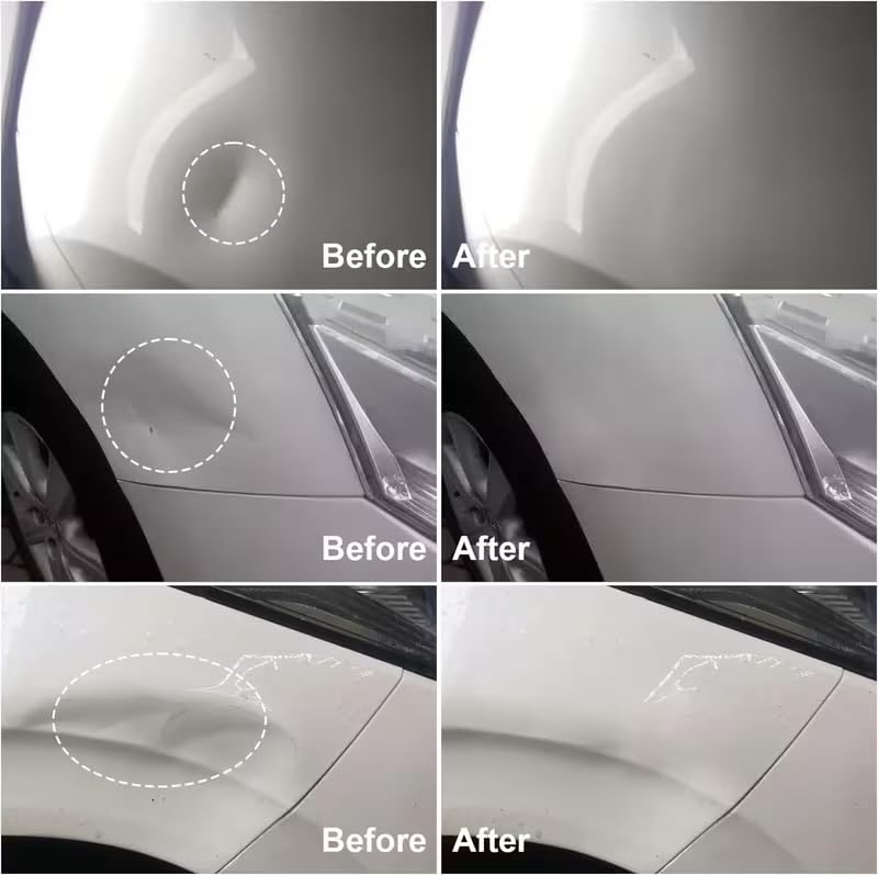 - سهل الاستخدام: لا يتطلب أدوات معقدة أو خبرة مسبقة، يمكن استخدامه بسهولة لإصلاح انبعاجات الأبواب والأغطية والأسطح المعدنية للسيارة