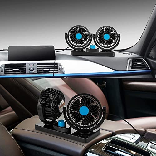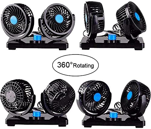Generic - مروحة سيارة كهربائية مزدوجة الرأس 12 فولت بسرعتين لمقعد الراكب بتصميم محمول وقابل للدوران 360 درجة تبريد القوية لتابلوه سيارات الدفع الرباعي والسيارات الترفيهية والجولف عدد المنافذ: 5 , 100 واط أسود