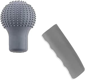 Generic - طقم غطاء الفتيس وهاند بريك سيارة سيليكون الناعم المضاد للانزلاق ، فتيس السيارات، هاند بريك للسيارة ، مدور لون رمادى - AGA