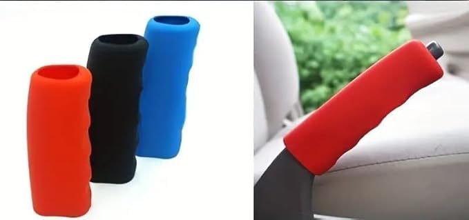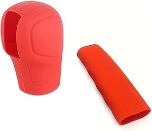 Generic - طقم غطاء عصا الفتيس وهاند بريك سيارة سيليكون الناعم المضاد للانزلاق ، غطاء عصا فتيس السيارات، هاند بريك للسيارة ، اوتوماتيك لون احمر -AGA