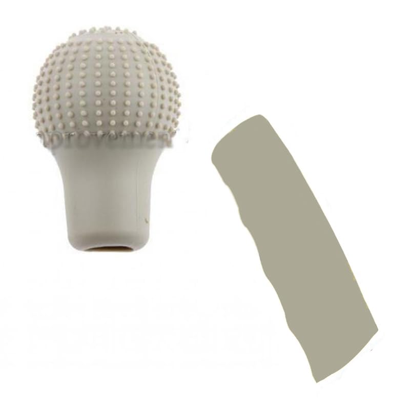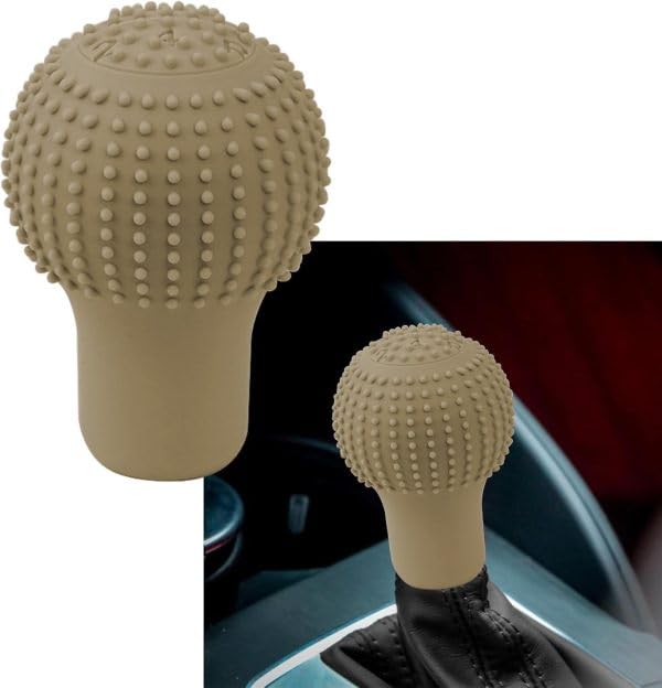 Generic - طقم غطاء عصا الفتيس وهاند بريك سيارة سيليكون الناعم المضاد للانزلاق ، غطاء عصا فتيس السيارات، هاند بريك للسيارة ، مدور لون بيج - SACAR