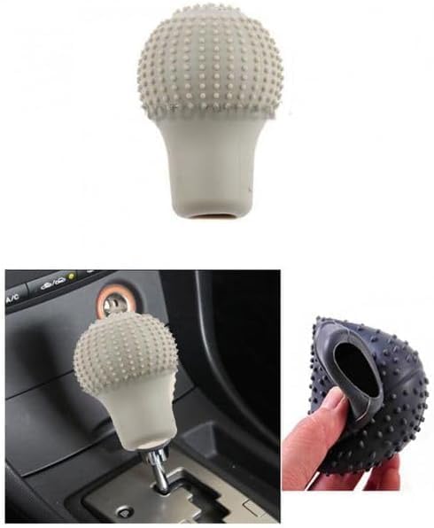 Generic - طقم غطاء عصا الفتيس وهاند بريك سيارة سيليكون الناعم المضاد للانزلاق ، فتيس السيارات، هاند بريك للسيارة ، مدور لون بيج - AGA