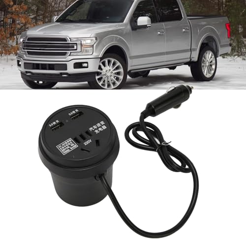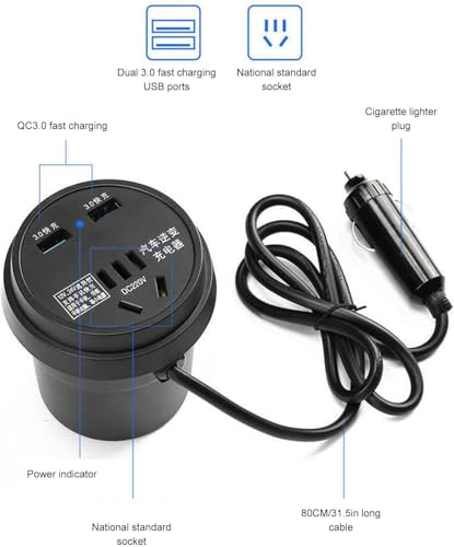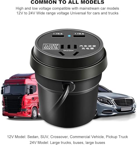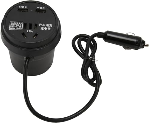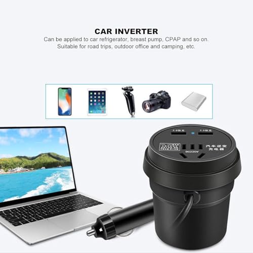 Generic - محول داخلي للسيارة بقدرة 150W من تيار مستمر 12V/24V إلى تيار متردد 110/220V، مزود بمنفذي USB للشحن السريع ومنفذ AC لأجهزة CPAP، اللاب توب، ثلاجة السيارات، التخييم، السفر، تصميم صغير مع حامل أكواب