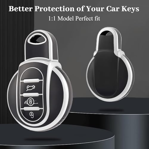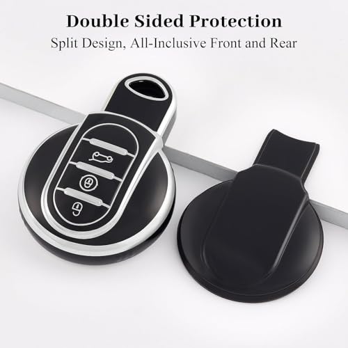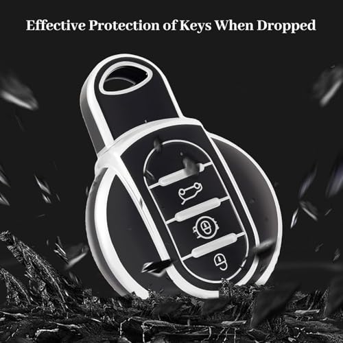Generic - حافظة مفتاح السيارة - غطاء مفتاح تحكم عن بعد ذكي من البولي يوريثين الحراري الناعم متوافق مع بي ام دبليو ميني كوبر F54 F55 F56 F57 F60 - فضي/اسود