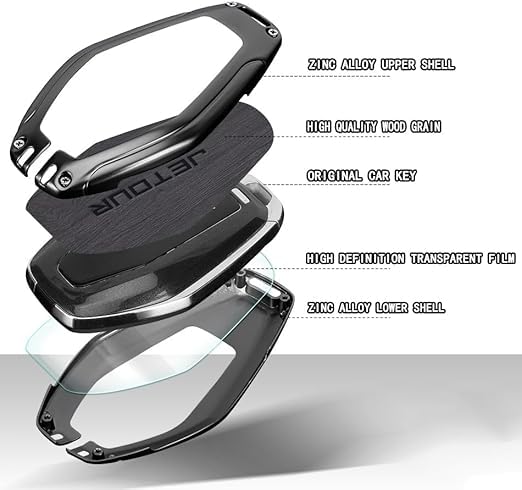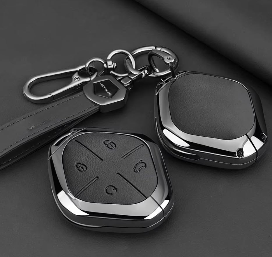 Generic - جراب حماية مفتاح السيارة مع ميدالية – متوافق مع جيتور داشينج وJetour L9، L6، X70، X90، X95 Plus – غطاء مفتاح من سبائك معدنية بتصميم أنيق ( أسود)