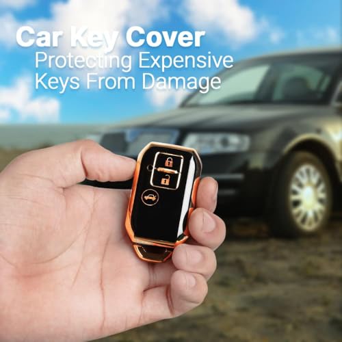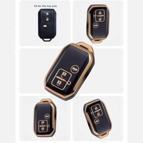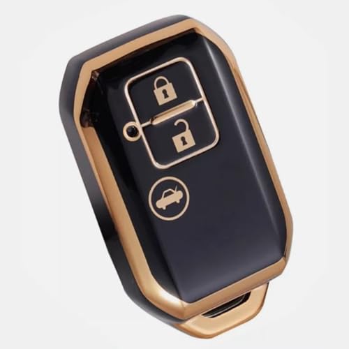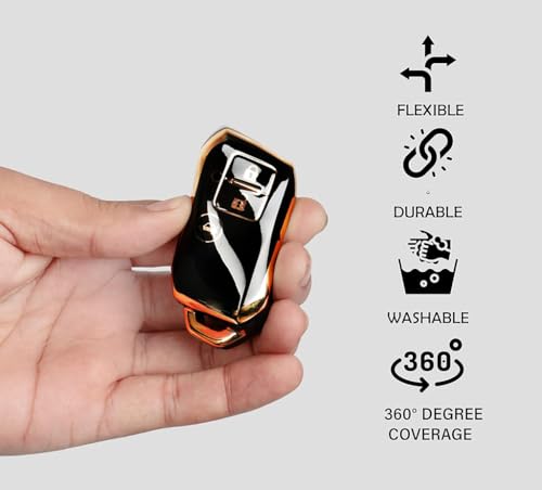 Generic - غطاء مفتاح سيارة، سيليكون لجهاز التحكم عن بعد بثلاثة أزرار من مادة TPU، متوافق مع ريموت العديد من السيارات اليابانية و حماية 360 درجة، مرن ومتين، قابل للغسل (أسود X ذهبى)