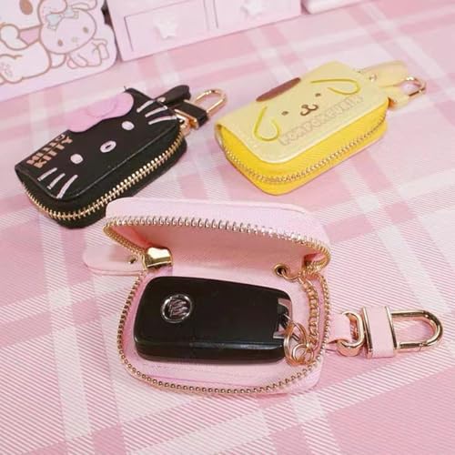 fashion mania - حافظة مفاتيح السيارة من الجلد الطبيعي مع سلسلة مفاتيح