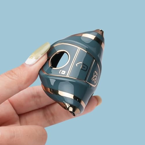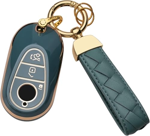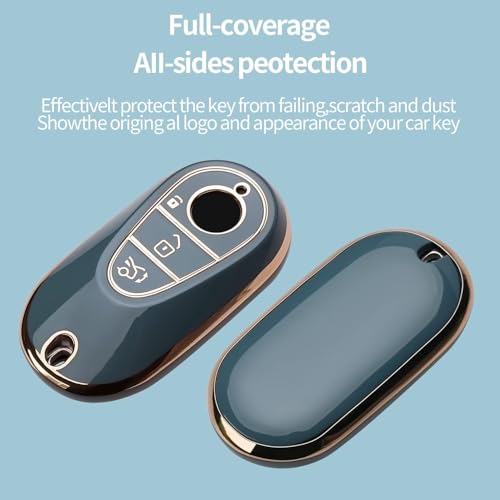 Generic - غطاء مفتاح سيارة سلسلة مفاتيح – TPU ناعم وحماية 360 درجة – متوافق مع مرسيدس بنز S-Class، G-Class، E-Class 2020-2025 – لون رمادي مع اطار ذهبي