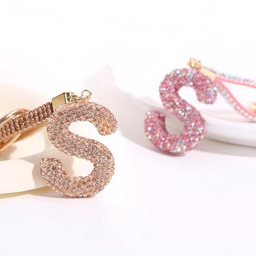 Generic - سلسلة مفاتيح سيارة مرصعة بالكريستال بنمط الحروف الأولى، اكسسوار عصري لمفاتيح السيارة والشنط والمستلزمات اليومية. تضفي لمسة أنيقة، لون وردي