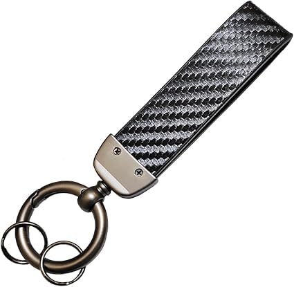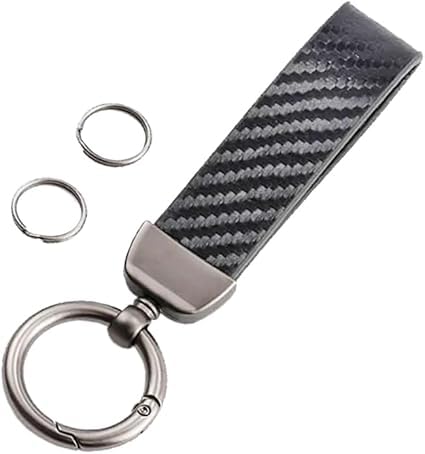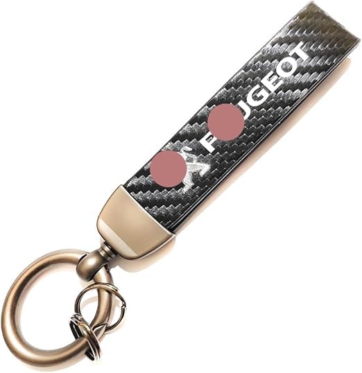 Generic - ميدالية وسلسلة مفاتيح سيارة كاربون اسود من الجلد وحلقات معدن مناسبة لمفاتيح السيارة والدراجات النارية ومفاتيح العائلة - متوافقة مع بيجو