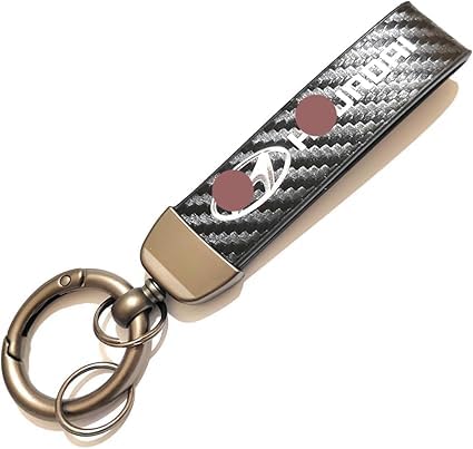 Generic - ميدالية وسلسلة مفاتيح سيارة كاربون اسود من الجلد وحلقات معدن مناسبة لمفاتيح السيارة والدراجات النارية ومفاتيح العائلة - متوافقة مع هيونداى