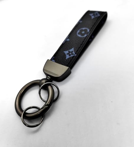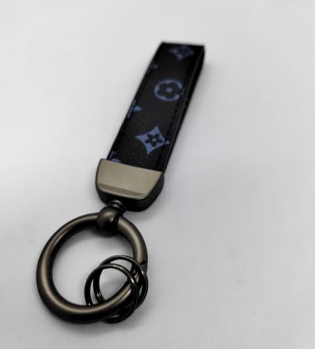 Generic - سلسلة مفاتيح سيارة للرجال ميدالية من الجلد وخليط معدني مناسبة للسيارة والموتوسيكل ومفاتيح المنزل والنساء - (جلد ومعدن ، لون اسود مع نقوشات ازرق) - SA CAR