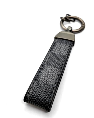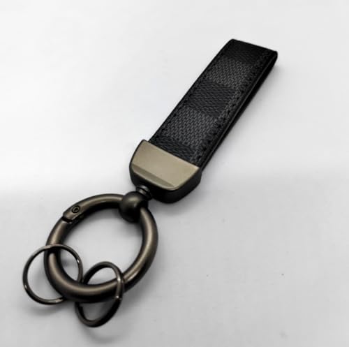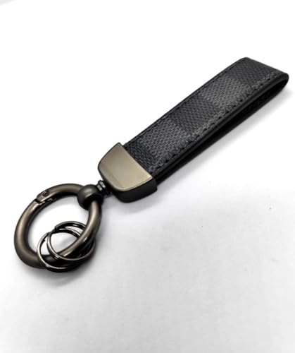 Generic - سلسلة مفاتيح سيارة للرجال ميدالية من الجلد وخليط معدني مناسبة للسيارة والموتوسيكل ومفاتيح المنزل والنساء - (جلد ومعدن ، لون اسود مع مربعات رمادي بشكل انيق ) - SA CAR