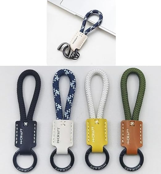 Generic - ميدالية وسلسلة مفاتيح سيارة ، مناسبة للسيارة والدراجات النارية والعائلة ----((جلد مضفر ومعدن ، لون كحلى ، كود : 912 ) ) - من نسمه ستور