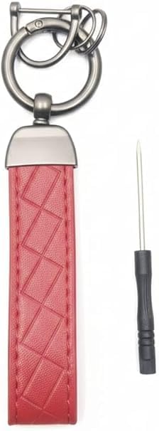 Generic - ميدالية وسلسلة مفاتيح سيارة ، مناسبة للسيارة والدراجات النارية والعائلة - بتصميم من الجلد والمعدن -عملية بتصميم عصري - لون احمر -aga