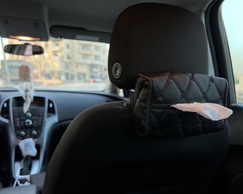 Generic - حامل مناديل ورقية قابل للتعديل للسيارة من ميك اوفر، حامل مناديل للتعليق على الجزء الخلفي لمسند رأس المقعد، مصنوع من الجلد ومتعدد الاستخدامات