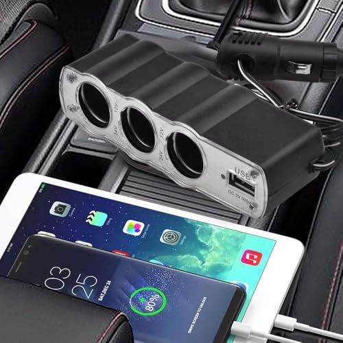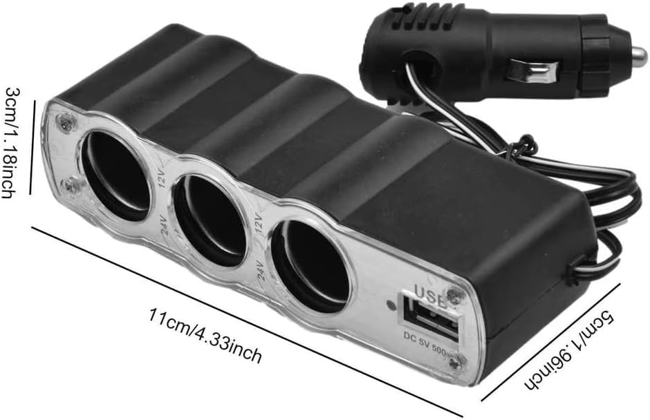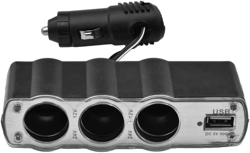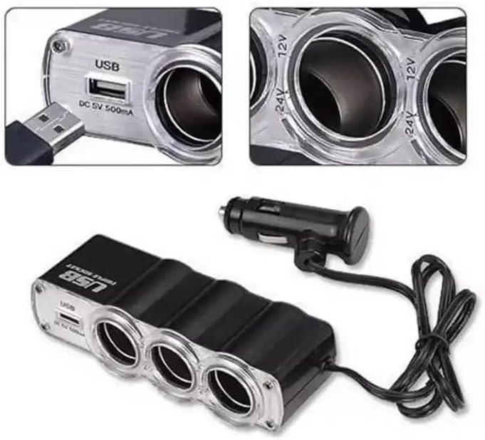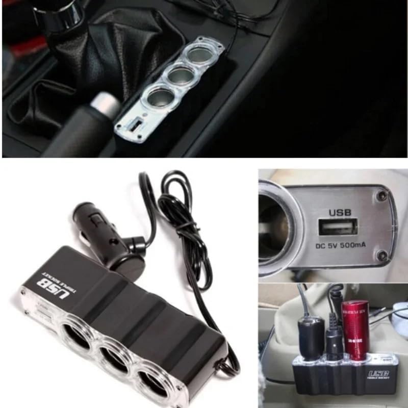 Generic - مشترك ولاعة السيارة، مقبس متعدد لولاعة السجائر، موزع كابلات للسيارة 3 منافذ + USB، محول ولاعة سجائر للسيارة (3عين-1USB) - من رنا ستور
