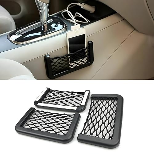 Generic - أكياس شبكية للسيارة - قل وداعًا للفوضى مع 6 أكياس شبكية لاصقة مقاس 3.2 بوصة × 6.35 سم لسيارتك، مثالية لتخزين العناصر الأساسية مثل مشابك الشعر والسجائر، سهلة التركيب وقابلة للحمل. (3 قطعة)