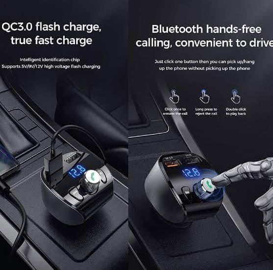 - مجموعة ومشغل mp3 للسيارة، وجهاز ارسال اف ام ومشغل موسيقى و محول طاقة للسيارة كيو سي 3.0 مشغل ام بي 3 اف ام متوافق مع جميع الموبايلات