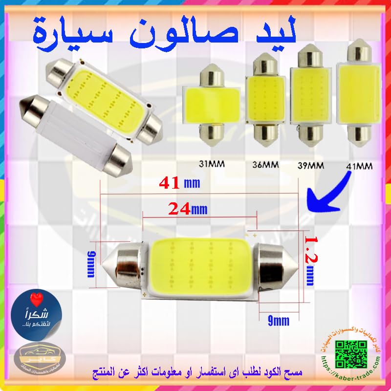 Generic - لمبة لوحة السيارة ، لمبات ليد داخلية ، T11 COB DC12V ، للسيارات متعددة الاستخدامات ( ابيض 12 ليد - 41 مم - 6 قطع ) - من كابر تريد