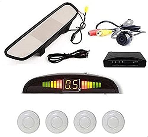 Other - كاميرا خلفية للسيارة مع جهاز استشعار، مؤشر، شاشة ال سي دي - ابيض