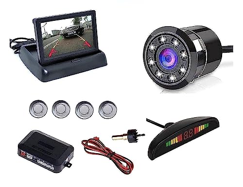 Generic - حساسات ركن للسيارات بشاشة LCD 4.3 بوصة وكاميرا بعدد 8 لمبات LED بزاوية رؤية واسعة عالية الدقة HD - فضي