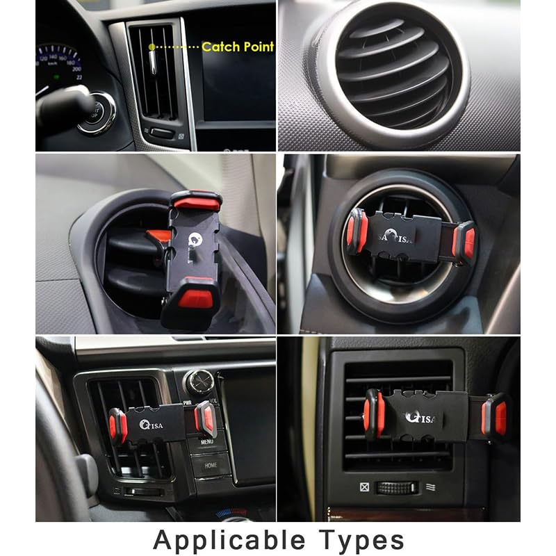 - ✅ توافق واسع: يدعم حامل الموبايل في السيارة معظم الهواتف الذكية، ومناسب لفتحات التهوية الأفقية في السيارات وسيارات الدفع الرباعي والشاحنات.