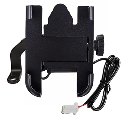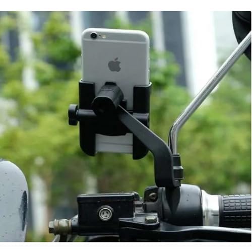 Generic - حامل موبايل بالشاحن يثبت على مسمار المرايا للموتوسيكلات والدراجات والسيارات الجبلية ومناسب لمعظم الهواتف – معدن اسود - من كابر تريد