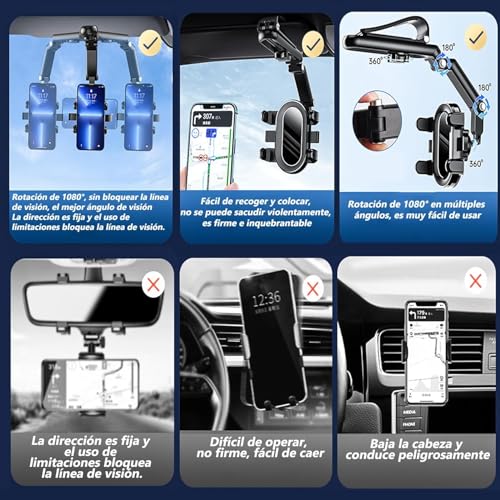 - 【حامل موبايل للتثبيت بشماسة السيارة】حامل موبايل متعدد الوظائف لمرآة الرؤية الخلفية بهيكل دوار 360 درجة، بحيث يمكنك وضع الموبايل في أي اتجاه. يمكن تمديد طول الذراع بشكل تلسكوبي من 0 إلى 5 سم، ولن يحجب رؤيتك أثناء القيادة. يُثبت حامل الموبايل بشماسة السيارة ويتم ضبطه بشكل مثالي لعدم حجب الرؤية وإبقاء عينيك على الطريق. وداعًا للنظر إلى الأسفل أثناء التنقل.