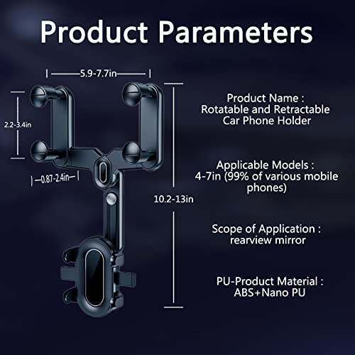 - 📱نصيحة التوافق: يرجى التحقق مما إذا كان مناسبًا لمقاس مراية صالون السيارة قبل الشراء. متوفر للمرايات بارتفاع 5.5-8.6 سم وسمك 2.2-6 سم، يمكن تعديل مشبك الموبايل وفقًا لعرض الموبايل وهو ما يجعله متوافقًا مع أي موبايل مقاس 4-7 بوصة.
