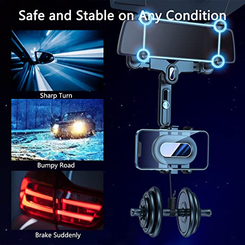 - 📱ستتخلى عن النظر لأسفل لتتبع مسار جهاز الملاحة: يتم تثبيت حامل الموبايل في السيارة على مراية صالون السيارة وضبط ارتفاعه لضمان بقاء نظرك على الطريق. لن تحتاج إلى النظر إلى جهاز الملاحة، وستحصل على تجربة مستخدم أكثر راحة وأمانًا باستخدام حامل الموبايل هذا، وضمان سفر أكثر أمانًا لك ولعائلتك.