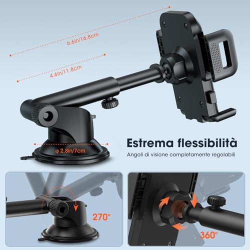 Beglero - حامل موبايل للسيارة بقاعدة تثبيت بالشفط، حامل موبايل للسيارة للوحة القيادة والزجاج الأمامي، حامل موبايل دوار 360 درجة للسيارة بزاوية تلسكوبية مع ذراع ممتد للموبايلات ونظام تحديد المواقع العالمي GPS