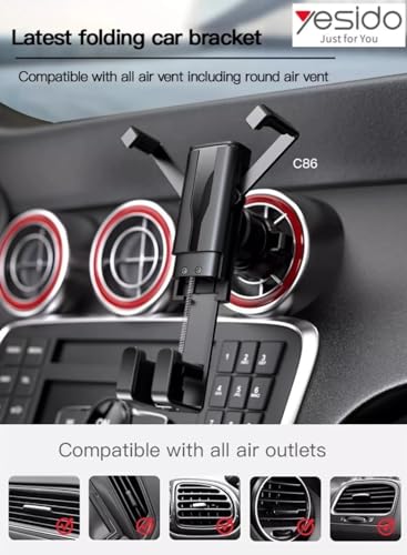 Generic - حامل موبايل للسيارة من يسيدو - جناح مخفي C86 - متعدد الزوايا - ضيق وأكثر استقرارًا - قابل للدوران - زر امان رابط الجاذبية - يمكن تخصيصه، مناسب لجميع الموبايلات - اسود