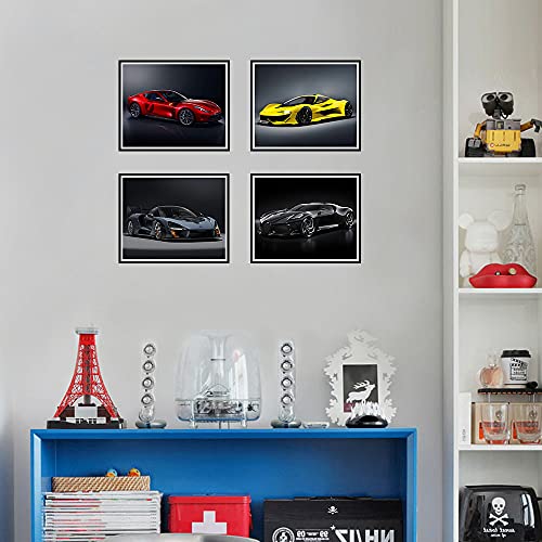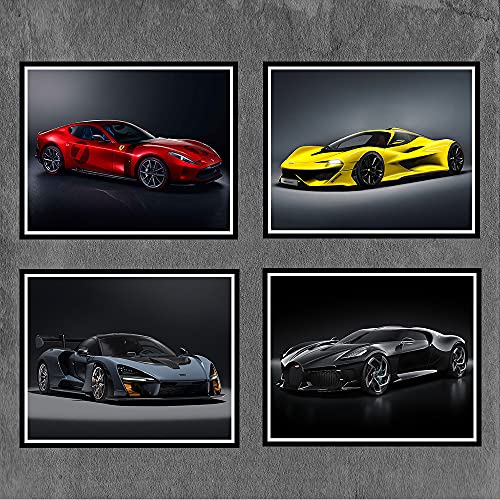 Generic - بوستر سيارات لامبورجيني وماكلارين وفيراري وبوجاتي، بوسترات حائط ديكور غرفة نوم الاولاد، مجموعة 4 قطع غير مؤطرة 8×10 بوصة ، سيارة 1 AH175