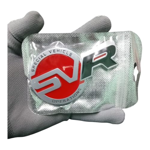 Generic - ملصق جانبي لباب صندوق السيارة الخلفي للسيارة مزين بلوجو اس في ار أحمر بتصميم V أسود معدني، قطعة واحدة